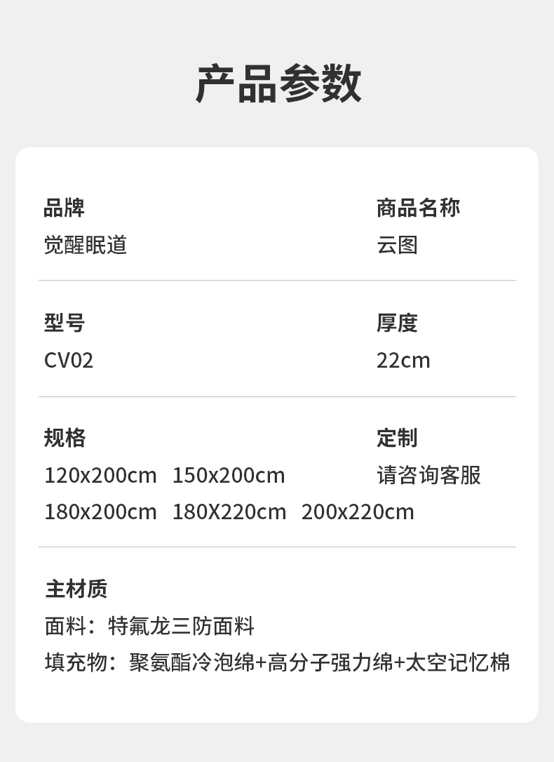 CV02云圖 厚度22cm 睡感:適中75% 指導(dǎo)價(jià):4280.00